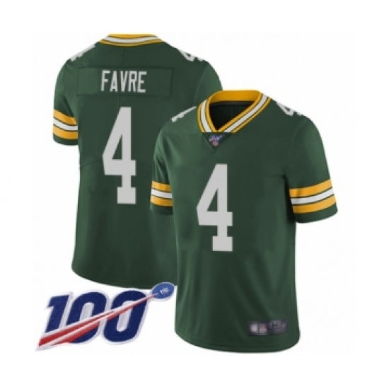 Men's Green Bay Packers #4 Brett Favre Green Team Color Vapor Untouchable Limited Player 100th Season Football Jersey