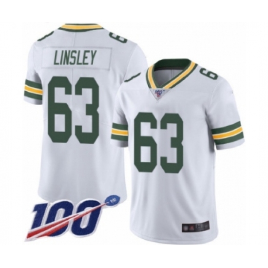 Men's Green Bay Packers #63 Corey Linsley White Vapor Untouchable Limited Player 100th Season Football Jersey