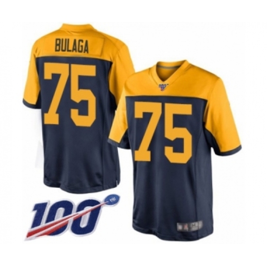 >Men's Green Bay Packers #75 Bryan Bulaga Limited Navy Blue Alternate 100th Season Football Jersey
