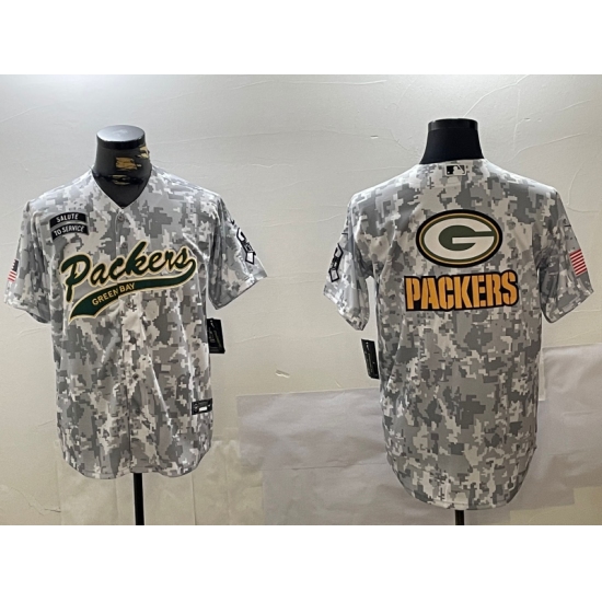 >Men's Green Bay Packers Team Logo 2024 Arctic Camo Salute to Service Stitched Baseball Jerseys