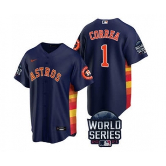 Men's Houston Astros #1 Carlos Correa 2021 Navy World Series Cool Base Stitched Baseball Jersey