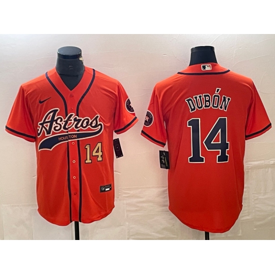 Men's Houston Astros #14 Mauricio Dubon Number Orange Cool Base Stitched Baseball Jersey