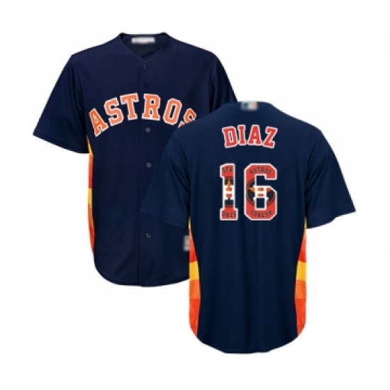 Men's Houston Astros #16 Aledmys Diaz Authentic Navy Blue Team Logo Fashion Cool Base Baseball Jersey