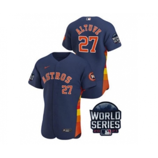 Men's Houston Astros #27 Jose Altuve 2021 Navy World Series Flex Base Stitched Baseball Jersey