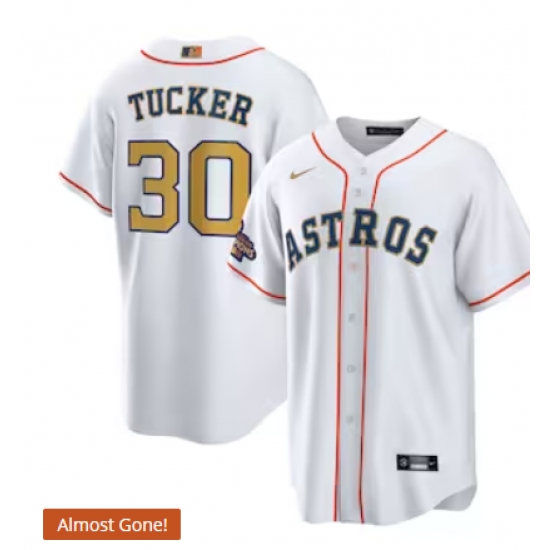 Men's Houston Astros #30 Kyle Tucker Nike White Gold 2023 Gold Collection Replica Player Jersey