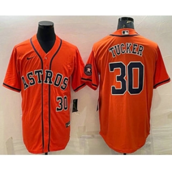 Men's Houston Astros #30 Kyle Tucker Number Orange With Patch Stitched MLB Cool Base Nike Jersey