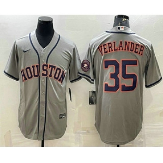 Men's Houston Astros #35 Justin Verlander Grey With Patch Stitched MLB Cool Base Nike Jersey