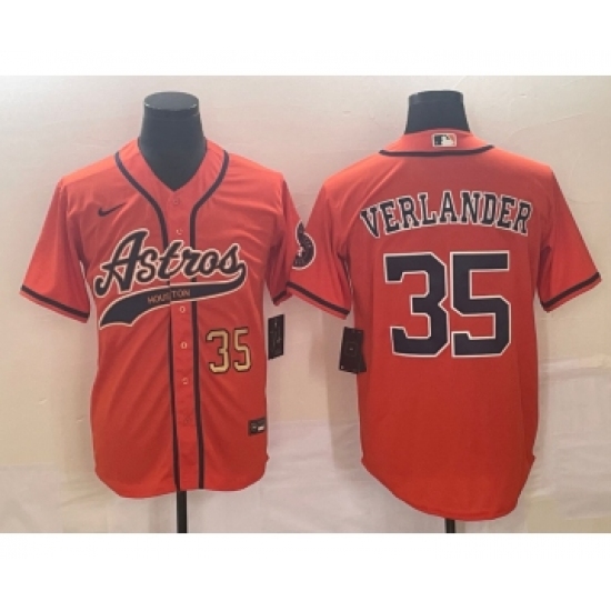Men's Houston Astros #35 Justin Verlander Number With Patch Cool Base Stitched Baseball Jersey