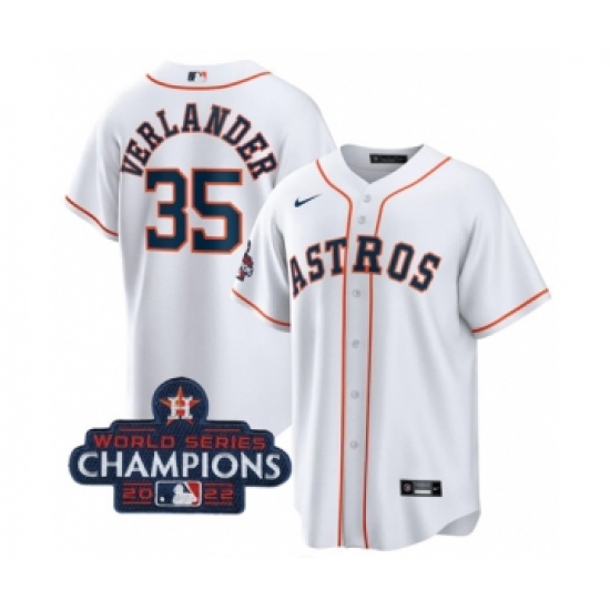 Men's Houston Astros #35 Justin Verlander White 2022 World Series Champions Home Stitched Baseball Jersey