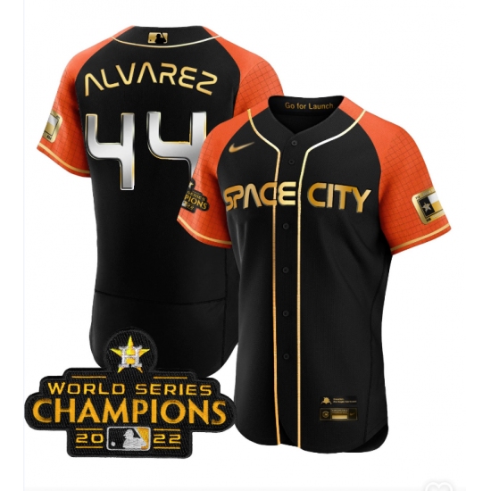 Men's Houston Astros #44 Yordan Alvarez 2023 Black Serise Champions Base Stitched Jerseys