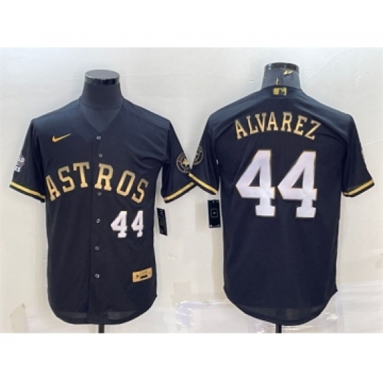 Men's Houston Astros #44 Yordan Alvarez Black Gold 2022 World Series Stitched Baseball Jersey