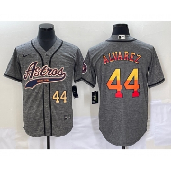 Men's Houston Astros #44 Yordan Alvarez Number Grey Gridiron Cool Base Stitched Baseball Jersey