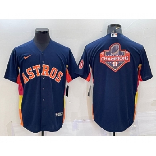 Men's Houston Astros Navy Blue Champions Big Logo With Patch Stitched MLB Cool Base Nike Jersey