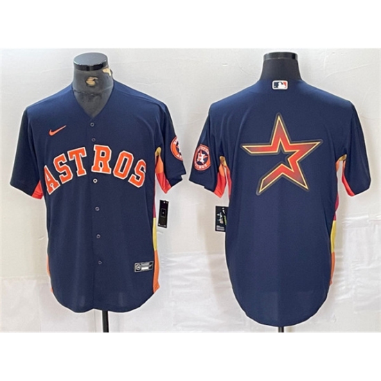 >Mens Houston Astros Navy Team Big Logo With Cool Base Stitched Baseball Jersey