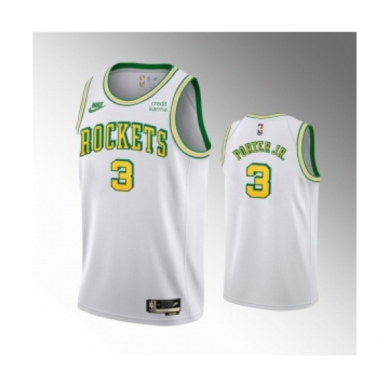 >Men's Houston Rockets #3 Kevin Porter Jr. White Swingman Classic Edition Stitched Basketball Jersey