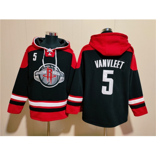 >Men's Houston Rockets #5 Fred VanVleet Black Red Lace-Up Pullover Hoodie