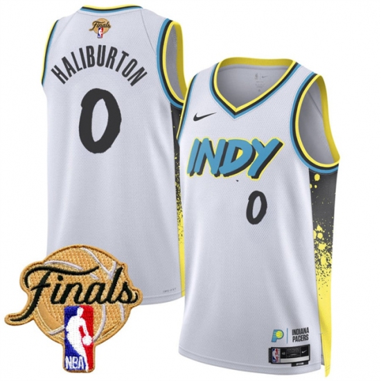 Men's Indiana Pacers #0 Tyrese Haliburton White 2025 Finals City Edition Stitched Basketball Jersey