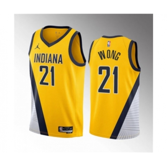 Men's Indiana Pacers #21 Isaiah Wong Yellow 2023 Draft Statement Edition Stitched Basketball Jersey