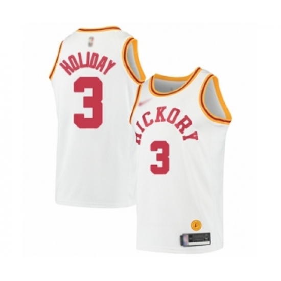 >Men's Indiana Pacers #3 Aaron Holiday Authentic White Hardwood Classics Basketball Jersey