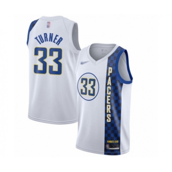 >Men's Indiana Pacers #33 Myles Turner Swingman White Basketball Jersey - 2019 20 City Edition