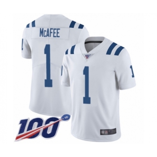 Men's Indianapolis Colts #1 Pat McAfee White Vapor Untouchable Limited Player 100th Season Football Jersey