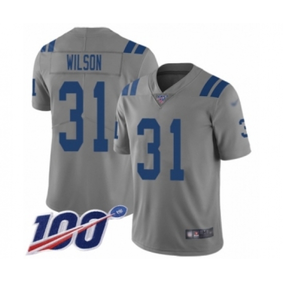 >Men's Indianapolis Colts #31 Quincy Wilson Limited Gray Inverted Legend 100th Season Football Jersey
