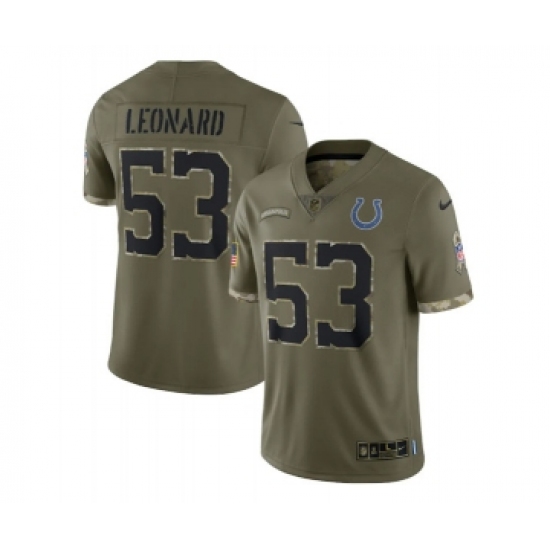 Men's Indianapolis Colts #53 Shaquille Leonard 2022 Olive Salute To Service Limited Stitched Jersey