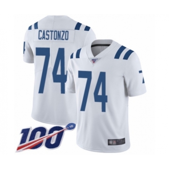 Men's Indianapolis Colts #74 Anthony Castonzo White Vapor Untouchable Limited Player 100th Season Football Jersey