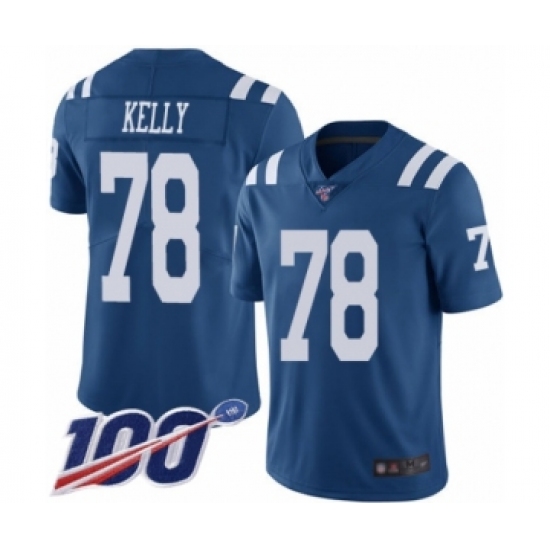 >Men's Indianapolis Colts #78 Ryan Kelly Limited Royal Blue Rush Vapor Untouchable 100th Season Football Jersey