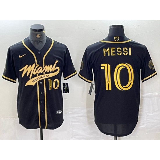 >Men's Inter Miami CF #10 Lionel Messi Black Gold Cool Base Stitched Baseball Jersey