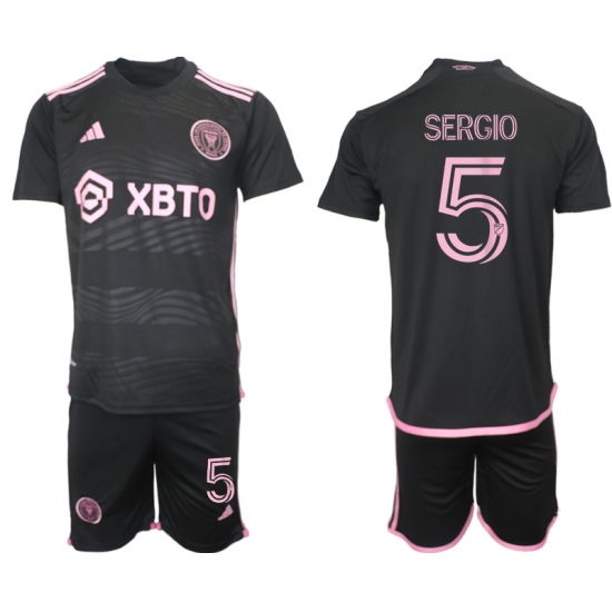 >Men's Inter Miami CF #5 Sergio Black 2023-24 Away Soccer Jersey