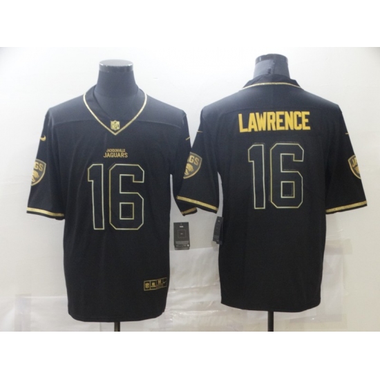 >Men's Jacksonville Jaguars #16 Trevor Lawrence Black Gold Nike Teal Limited Jersey