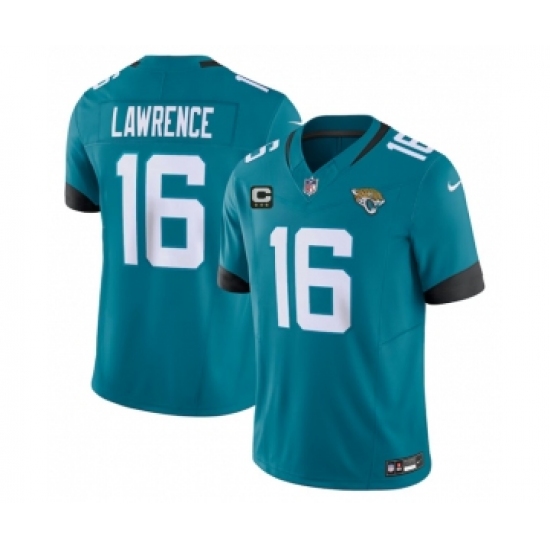 >Men's Jacksonville Jaguars #16 Trevor Lawrence Teal 2023 F.U.S.E With 3- Star C Patch Vapor Untouchable Limited Football Stitched Jersey