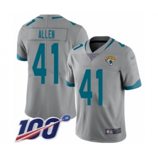 Men's Jacksonville Jaguars #41 Josh Allen Silver Inverted Legend Limited 100th Season Football Jersey
