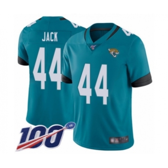 >Men's Jacksonville Jaguars #44 Myles Jack Teal Green Alternate Vapor Untouchable Limited Player 100th Season Football Jersey