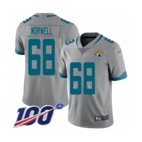>Men's Jacksonville Jaguars #68 Andrew Norwell Silver Inverted Legend Limited 100th Season Football Jersey