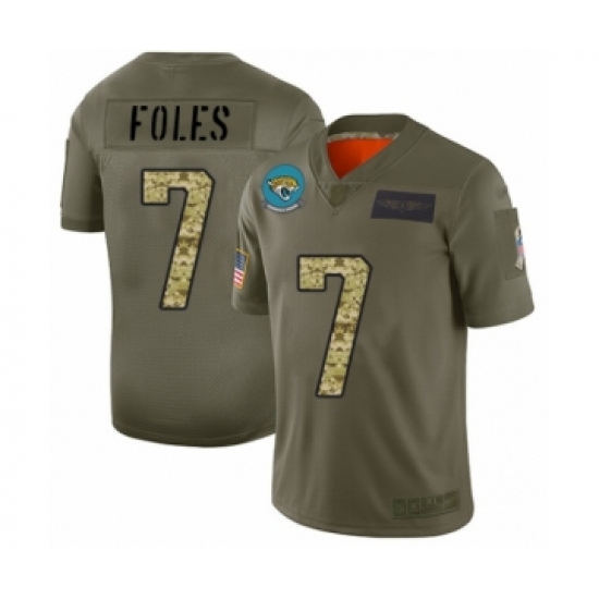 >Men's Jacksonville Jaguars #7 Nick Foles Limited Olive Camo 2019 Salute to Service Football Jersey