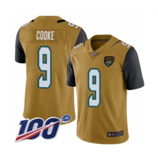 >Men's Jacksonville Jaguars #9 Logan Cooke Limited Gold Rush Vapor Untouchable 100th Season Football Jersey