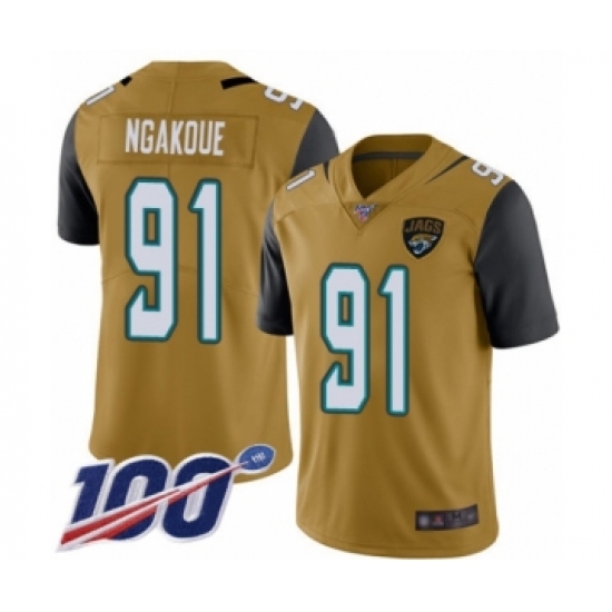 >Men's Jacksonville Jaguars #91 Yannick Ngakoue Limited Gold Rush Vapor Untouchable 100th Season Football Jersey