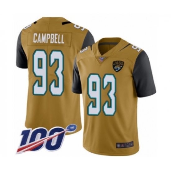 >Men's Jacksonville Jaguars #93 Calais Campbell Limited Gold Rush Vapor Untouchable 100th Season Football Jersey