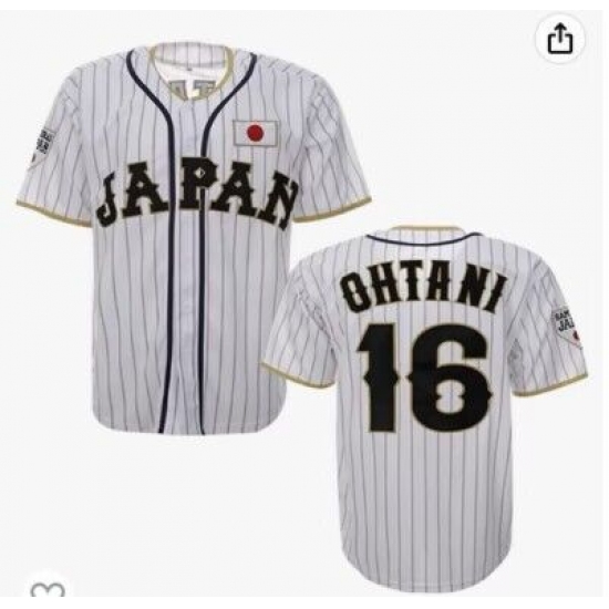 Men's Japan #16 Ohtani Hip Hop Short Sleeves Baseball Jersey Black White Mix Stripe Stitched