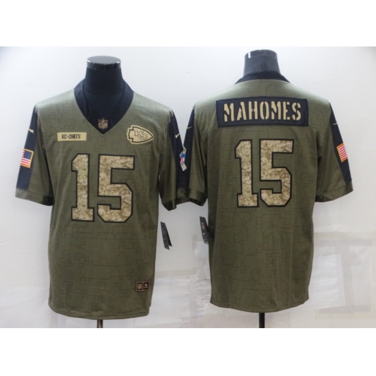 >Men's Kansas City Chiefs #15 Patrick Mahomes Nike Camo 2021 Salute To Service Limited Player Jersey