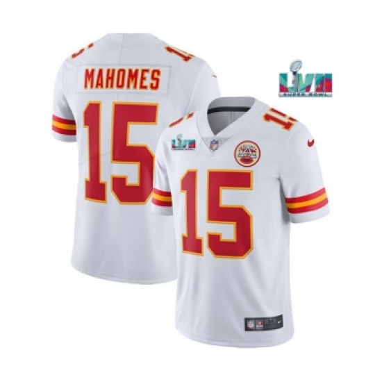 >Men's Kansas City Chiefs #15 Patrick Mahomes White Super Bowl LVII Patch Vapor Untouchable Limited Stitched Jersey