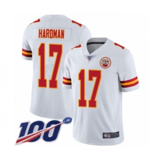 Men's Kansas City Chiefs #17 Mecole Hardman White Vapor Untouchable Limited Player 100th Season Football Jersey