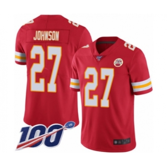 >Men's Kansas City Chiefs #27 Larry Johnson Red Team Color Vapor Untouchable Limited Player 100th Season Football Jersey