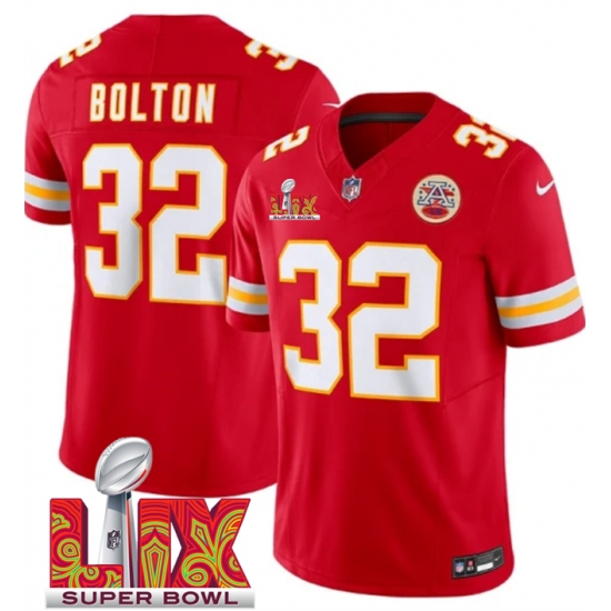 Men's Kansas City Chiefs #32 Nick Bolton Red 2025 Super Bowl LIX F.U.S.E. Vapor Limited Stitched Football Jersey