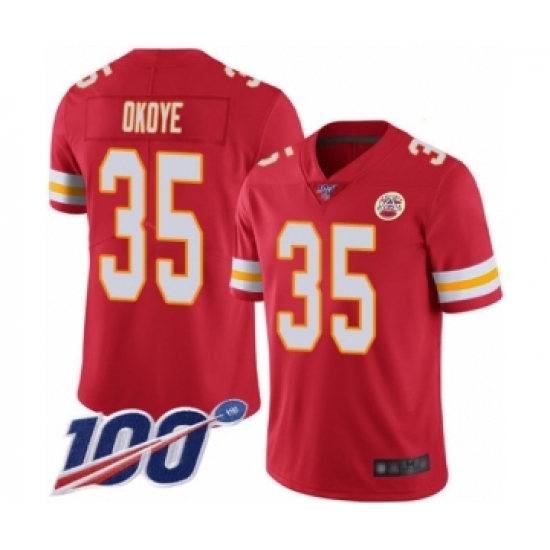 >Men's Kansas City Chiefs #35 Christian Okoye Red Team Color Vapor Untouchable Limited Player 100th Season Football Jersey