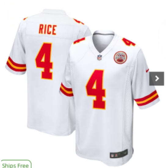 >Men's Kansas City Chiefs #4 Rashee Rice White Vapor Untouchable Limited Stitched Football Jersey