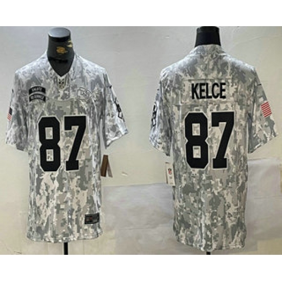 >Men's Kansas City Chiefs #87 Travis Kelce Arctic Camo 2024 FUSE Salute to Service Limited Stitched Jersey