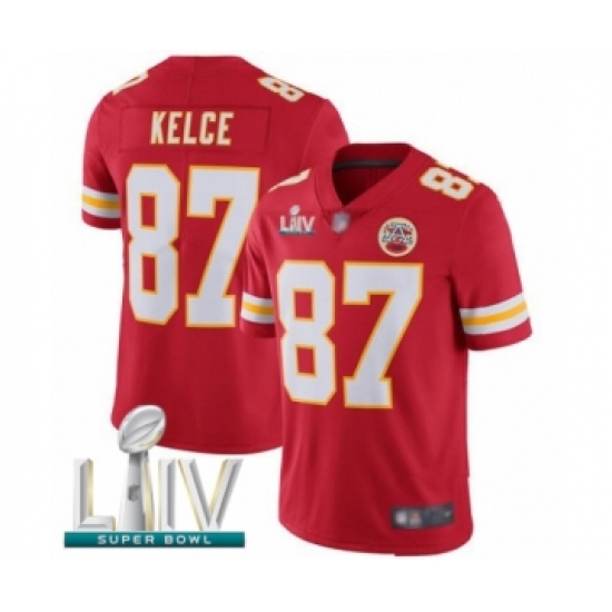 Men's Kansas City Chiefs #87 Travis Kelce Red Team Color Vapor Untouchable Limited Player Super Bowl LIV Bound Football Jersey